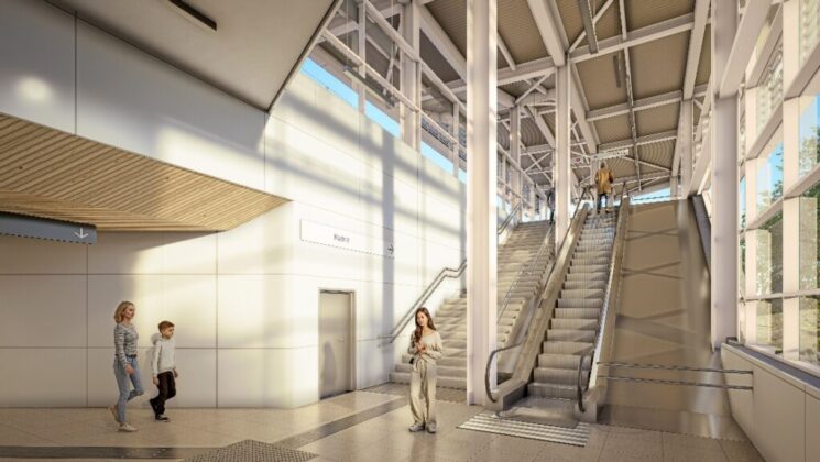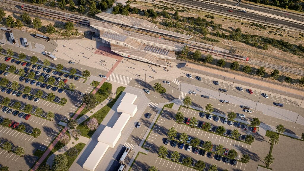 El edificio de viajeros incluirá vestíbulo, tornos, autoventa y espacios operativos, con recorridos optimizados. La actuación suma urbanización exterior, integración con autobuses y bicicleta, y accesos rodados. También prevé áreas técnicas bajo andenes y conexión con el entorno urbano en desarrollo municipal y mejora capacidad del nodo de transporte local.