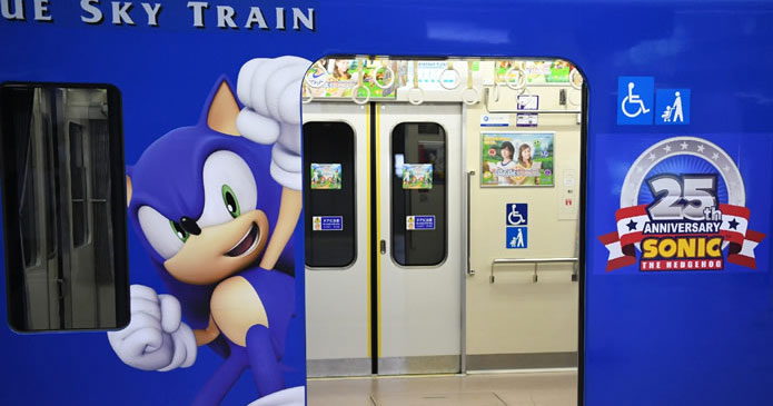 Pero como podéis ver, aquí no solamente se dedican a poner un par de carteles en las paredes, sino que prácticamente empapelan el vagón de arriba a abajo y se quedan tan panchos. ¿Os imagináis algo así en España? Ni locos dejan que maquetemos con Sonic un AVE…