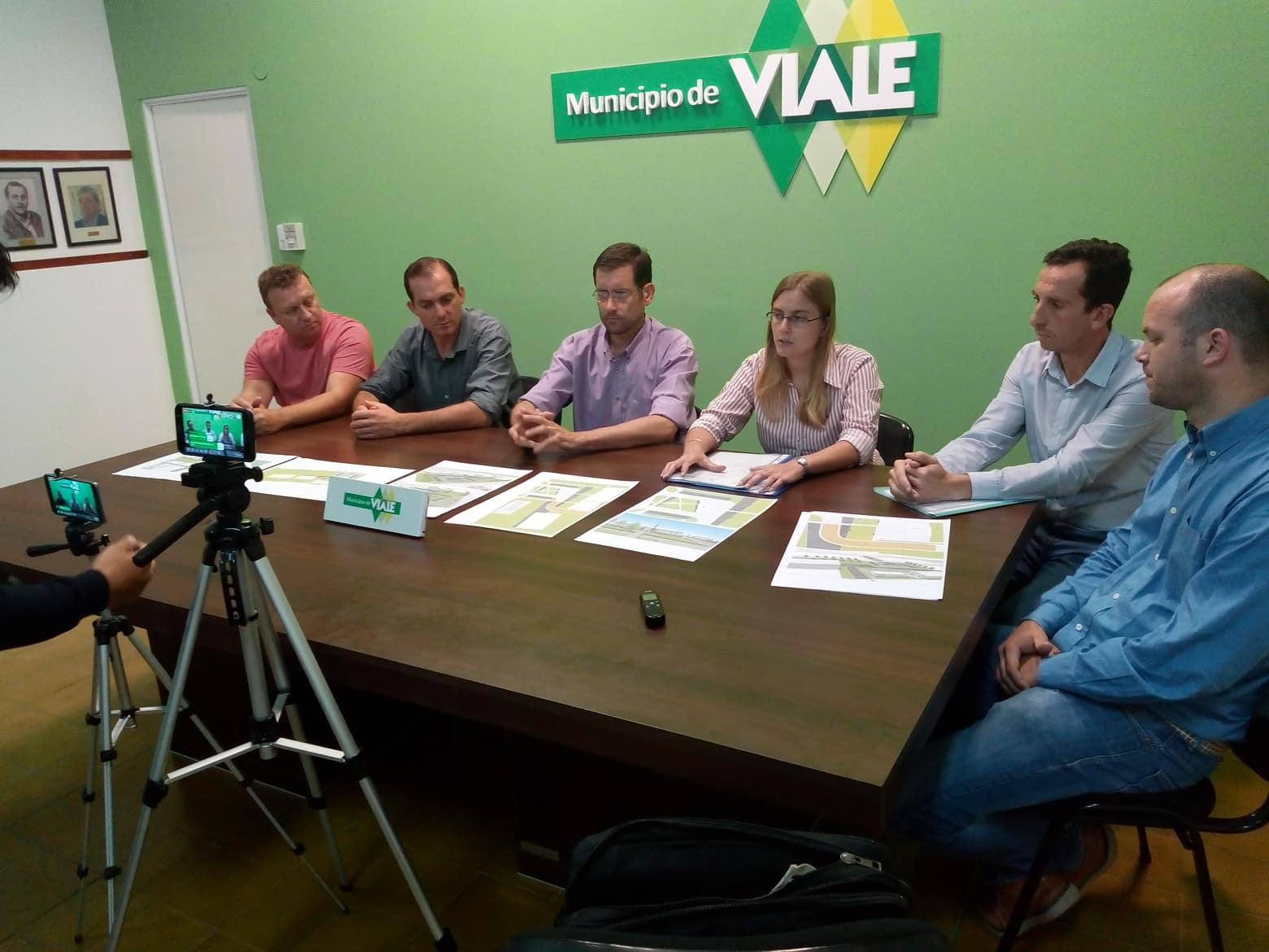 Viale, Entre Ríos, Argentina – En conferencia de prensa, el Ejecutivo municipal (Brupbacher, Pérez y Heft) junto a Alexiana Gastaldi, los Arquitectos Mariano Grinóvero y Guillermo Lell, brindaron detalles sobre la reciente aprobación del proyecto de remodelación del predio del Ferrocarril.