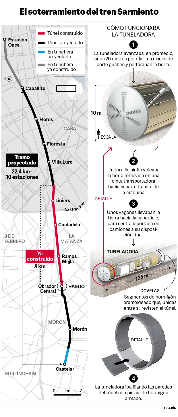 Según pudo saber Clarín, el Gobierno de la Ciudad cuenta con el dinero para financiar la obra. Pero no sería en forma de túnel. El costo de continuar con el proyecto original, dicen, es tres veces mayor al de hacer un viaducto. Y también aseguran que pueden hacer la obra para que el tren empalme con las vías del lado de Provincia. Y que también se puede hacer un enlace en el caso de que, en el futuro, el Estado Nacional se decida a hacer correr el tren bajo tierra.
