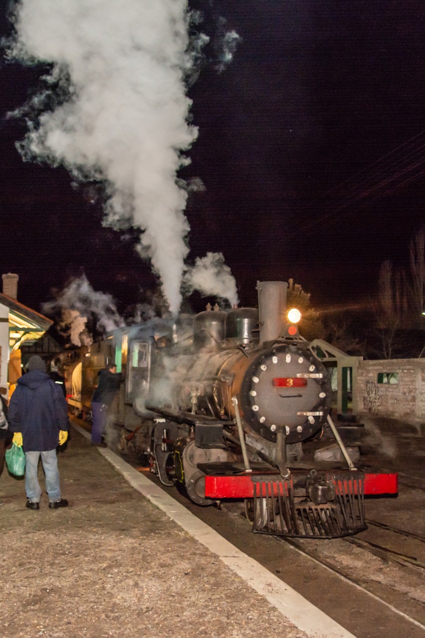 Puntualmente a las 7:30 la vieja locomotora Baldwin Nº 3, fabricada en Inglaterra en 1922, comenzó a remolcar la formación de vagones, secundada por otra máquina: una Henschel Nº 104 fabricada en ese año, pero en Alemania.