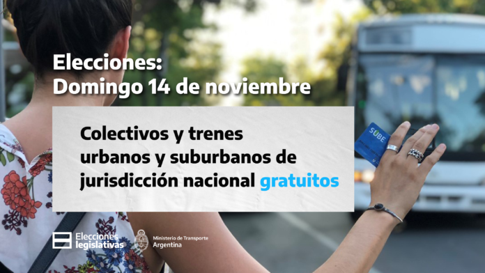 Buenos Aires – Argentina – 09/11/2021La medida, que ya se había dispuesto para las elecciones Primarias Abiertas Simultáneas y Obligatorias (PASO) celebradas el 12 de septiembre, facilita el traslado al ejercicio de su derecho a los y las votantes, estableciendo la gratuidad para el transporte automotor y ferroviario urbano y suburbano de Jurisdicción Nacional y para aquellos servicios que no siendo de Jurisdicción Nacional se encuentren incorporadas al sistema SUBE.