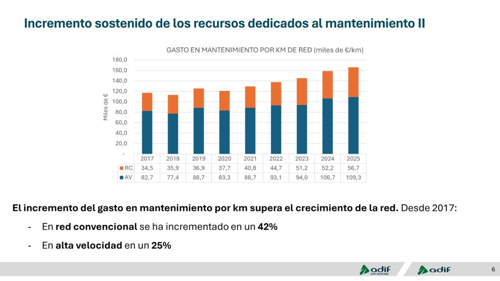 Concluida la intervención, fue el turno del ministro Puente tomó la palabra. En sus primeros momentos, se diferenció del fragmento del discurso de Carrillo, quien había destacado la excelencia de las infraestructuras en España. «La verdad nunca no sé dónde ha estado nunca la excelencia, por ejemplo, en los núcleos de Cercanías de este país. Todavía es hoy es un mal servicio y lleva siendo durante más de dos o tres décadas. Qué decir de Cercanías Madrid y no digamos los otros asturiano, cántabro, o los inexistentes como el gallego», dijo Puente. Luego explicó que el plan que se estaba presentando es la antesala del que esperan poner en marcha en el periodo 2027-2031. En el ámbito ferroviario, las inversiones que Puente auguró para el sector rondan los €6.000 millones por año. Apuntó, además, que actualmente hay suscritos protocolos de soterramiento por casi €40.000 millones, muchos de los cuales no han tenido avance, aunque confía en logren destrabarse y comenzar a realizarse.