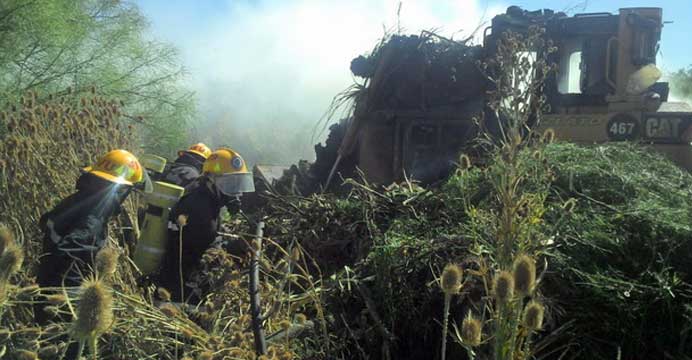 Entre Ríos: Una máquina topadora Caterpillar, perteneciente a la empresa Ivico, que trabaja para Trenes Argentinos, se incendió el jueves en Urdinarrain mientras realizaba tareas de desmonte a la vera de las vías, a la altura del kilómetro 60 de la Ruta 20.