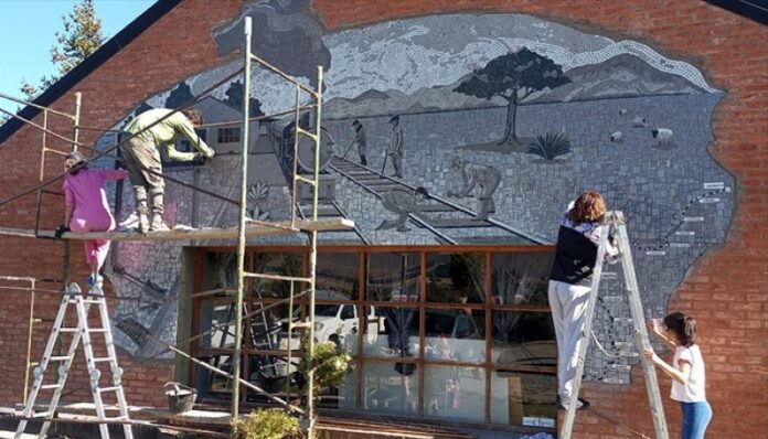 Chubut – Argentina – 13/04/2023: El acto tendrá lugar minutos antes de que se realice la tradicional salida hacia la Estación Nahuelpan, distante a unos pocos kilómetros del casco urbano. El evento contará con la presencia de la gerencia del Viejo Expreso Patagónico, funcionarios provinciales, trabajadores ferroviarios y sus familias. También asistirá la responsable y creadora de la obra, la mosaiquista esquelense Barbara Noceda y se extiende la invitación a todos los vecinos de la comunidad que quieran participar.