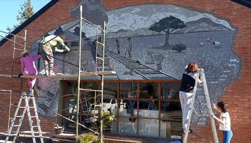 El mosaico, de 14 metros cuadrados, está en escala de grises simulando una antigua fotografía de la primera Estación de Esquel, siendo los protagonistas los trabajadores ferroviarios. La ilustración fue llevada a cabo por el artista Matías Montero Lacasa. Este mural responde a una idea que se gestó por parte de los trabajadores en 2017 y hoy se concreta luego de más de diez meses de trabajo en conjunto entre los artistas y la subgerencia de Comercialización y Marketing del Viejo Expreso Patagónico.