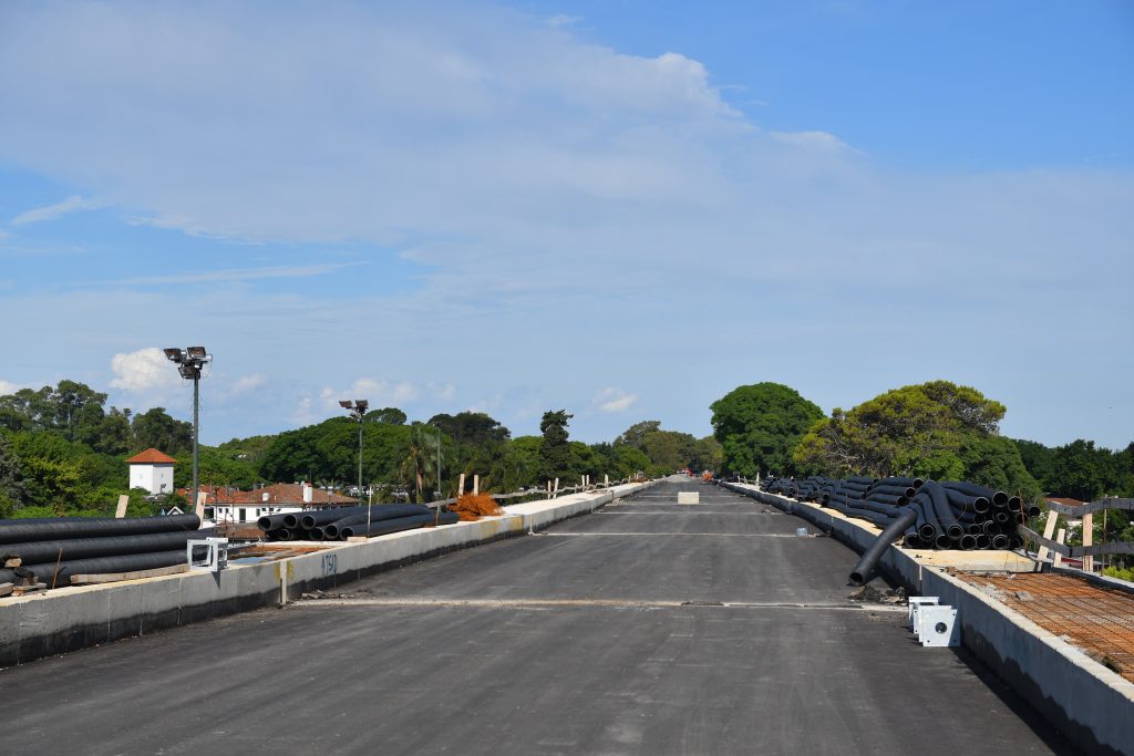 Hace unas semanas se colocó la última dovela del viaducto, que son estructuras de hormigón de 12 metros de longitud y 40 toneladas de peso que, unidas por barras de acero, forman parte del tablero sobre el cual se montarán las vías del tren.