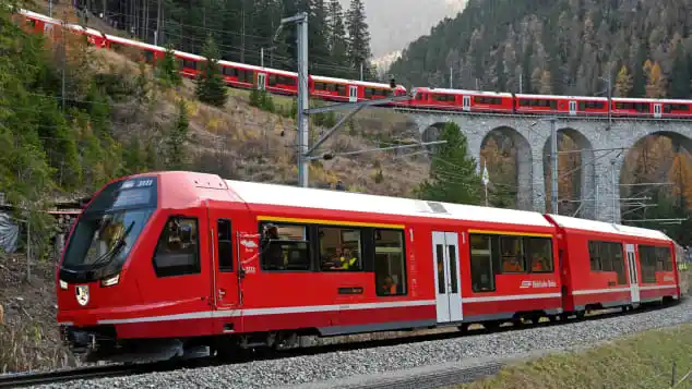 Al igual que la legendaria pista de trineo Cresta Run, la Línea Albula es famosa por sus interminables curvas en picada y sus pronunciados descensos. Obra maestra de la ingeniería civil de renombre mundial, la línea de 62 kilómetros entre Thusis y St. Moritz tardó solo cinco años en construirse a pesar de requerir 55 puentes y 39 túneles.