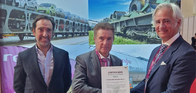 Renfe Mercancías (RM) ha entregado a Pecovasa Renfe Mercancías el certificado de huella de carbono que la compañía concede a sus clientes y que cuantifica que el transporte de las mercancías de esta compañía con la sociedad RM permitió un ahorro de 12.227 toneladas netas de emisiones de gases de efecto invernadero a la atmósfera durante el año 2023 si se compara con las emisiones que se hubieran producido de realizar ese mismo transporte por carretera.