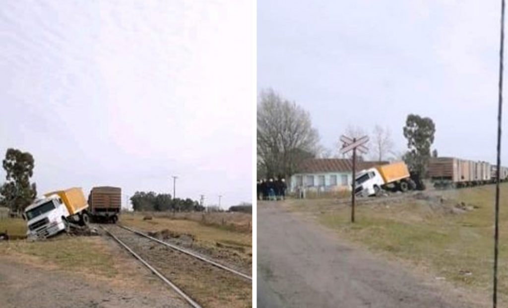 Según informó Radio Azul, fue cerca del mediodía que por causas que se investigan, un camión impactó contra un tren de carga, a la altura de las vías del ferrocarril en el Paraje La Colorada.