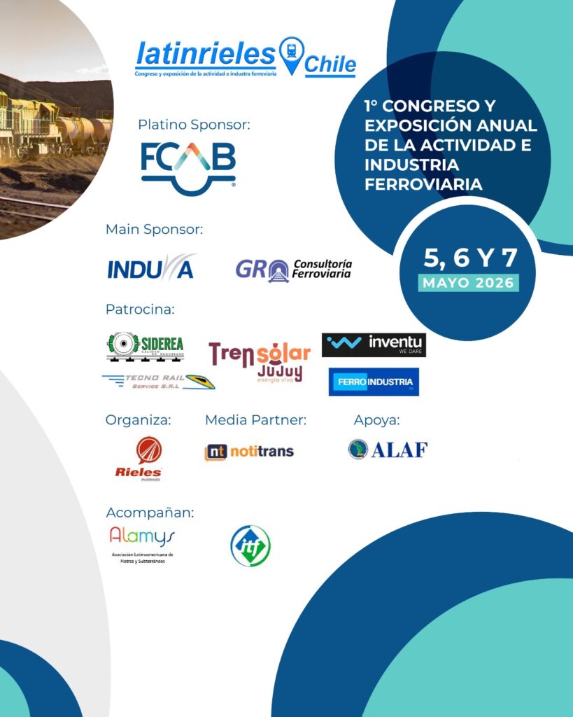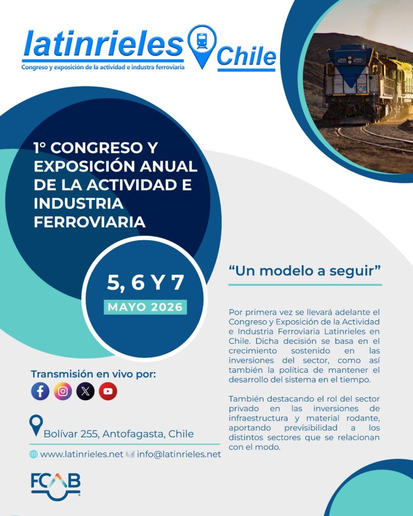 El 1° Congreso de la Actividad e Industria Ferroviaria Latinrieles, reunira a los principales protagonistas nacionales e internacionales del sector durante el mes de mayo de 2026, siendo Antofagasta un lugar unico por su historia y en donde el Ferrocarril sera protagonista.