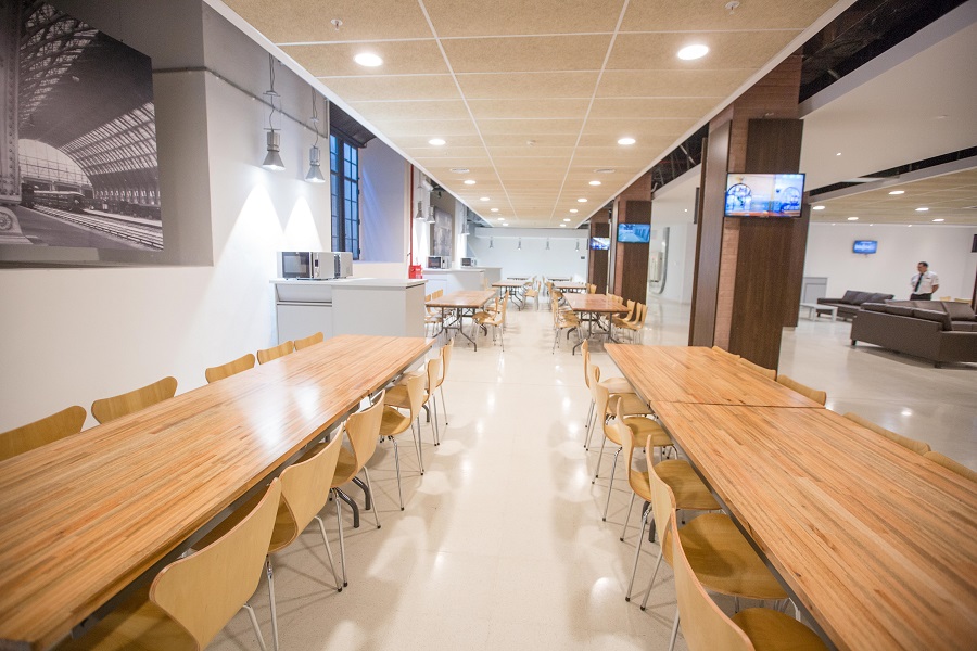 En cuanto a las instalaciones para los trabajadores, se ofrecen nuevos puestos de trabajo para el área de material rodante y para los auxiliares que despachan los trenes, con monitores LED en el que se visualizan los andenes. Los empleados disponen de nuevos vestuarios y baños amplios y modernos con 500 lockers, duchas y bachas. Además, tienen una sala de descanso y comedor con 180 plazas. Allí cuentan con sillones, mesas, sillas, televisores de 42” full HD y 12 microondas y dispensers de agua fría y caliente conectados a la red de agua potable. Por último, se incluyó una sala de capacitación y una cocina con 4 hornos eléctricos, 12 heladeras de 380 litros, 4 anafes eléctricos y 8 bachas.