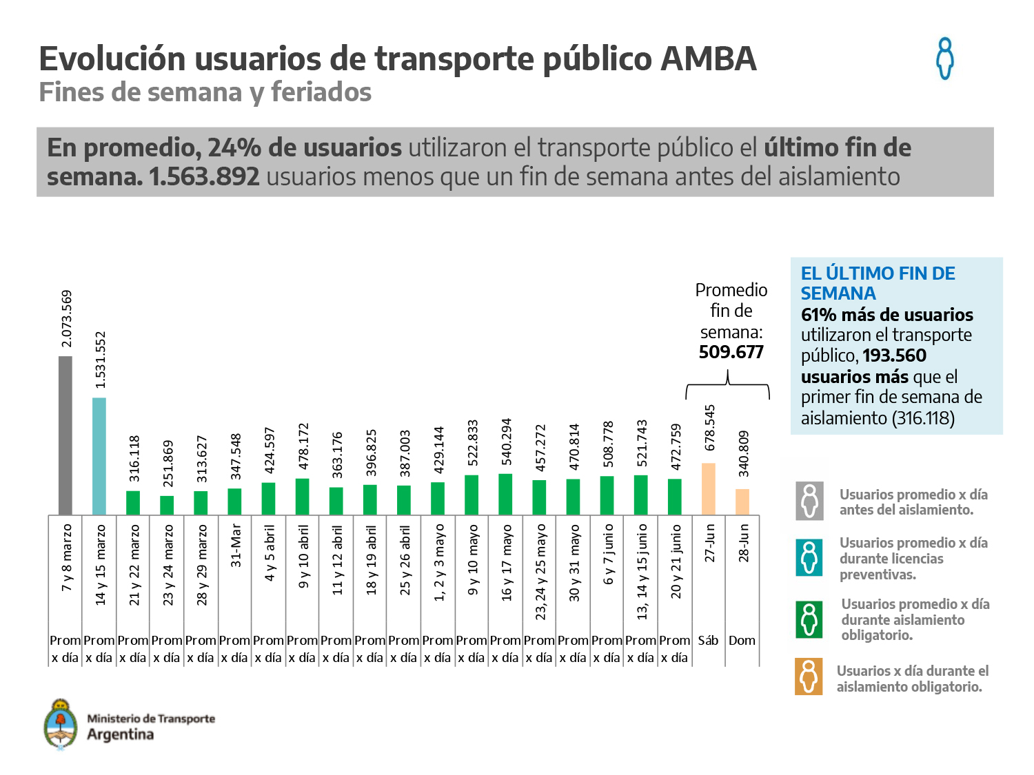 Por otro lado, el promedio de circulación de la semana pasada, comprendida entre el lunes 22 al viernes 26 de junio, fue de 978.345 usuarios.