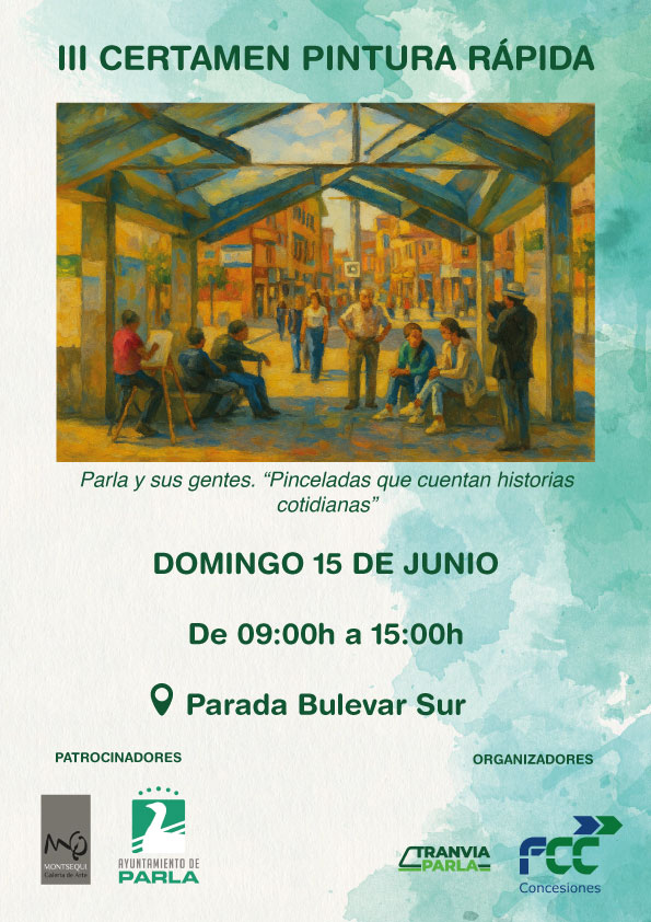Tranvía de Parla ha anunciado la celebración de su «III Certamen de Pintura Rápida» que tendrá lugar el domingo 15 de junio de 2025. El evento, que combinará arte y transporte ferroviario, se desarrollará entre las 9:00 y las 15:00 horas en la parada Bulevard Sur.