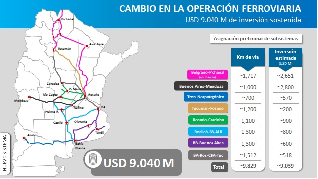 Esta inversión en el Tren Norpatagónico se suma a las inversiones que está ejecutando el Ministerio de Transporte para reactivar el tren de cargas en el país por un total de 9000 millones de dólares para renovar 9850 kilómetros de vías y crear 70.000 empleos directos en las obras.