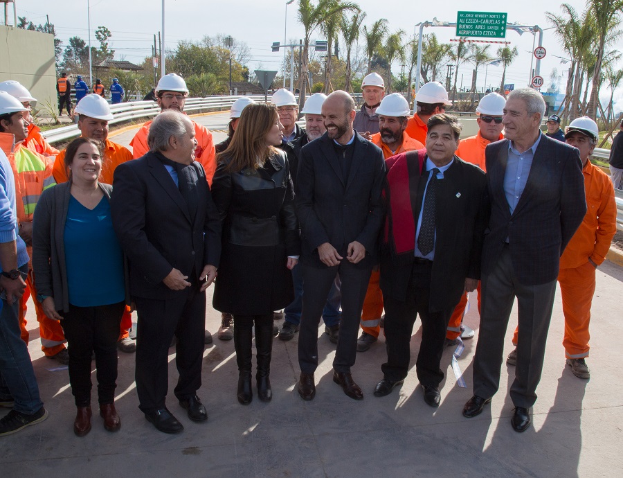 Buenos Aires, 7 de junio. – Esta mañana el ministro de Transporte de la Nación, Guillermo Dietrich, junto a la gobernadora de la provincia de Buenos Aires, María Eugenia Vidal, y el intendente de Ezeiza, Alejandro Granados, inauguraron un nuevo paso bajo nivel sobre la calle Newbery que atraviesa, por debajo, las vías del Tren Roca y la Ruta Nacional 205.