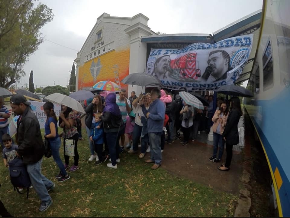 Santa Fe – Argentina – 17/11/2019: Casi 40 años después volvió a llegar un tren de pasajeros a la localidad de Bombal, provincia de Santa Fe. En el marco de los festejos por los 100 años de su nacimiento y gracias al trabajo realizado por el Sindicato La Fraternidad, la Juventud Fraternal seccional Villa Diego y a Trenes Argentinos Operaciones, el día de ayer la Estación Bombal recibió un Tren de Pasajeros nuevamente, por lo cual toda la población se vistió de fiesta (pese a la lluvia y el mal tiempo).